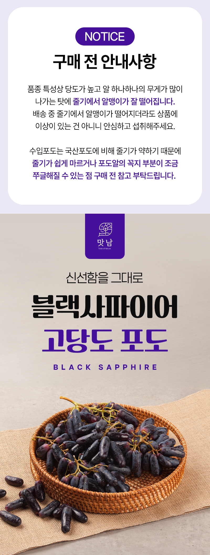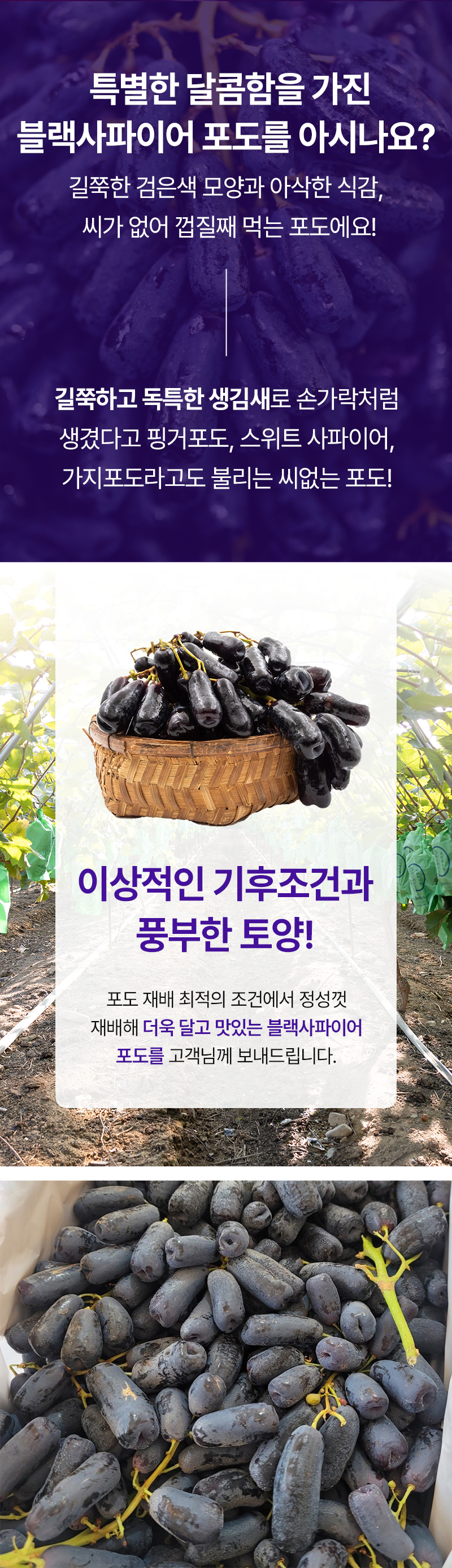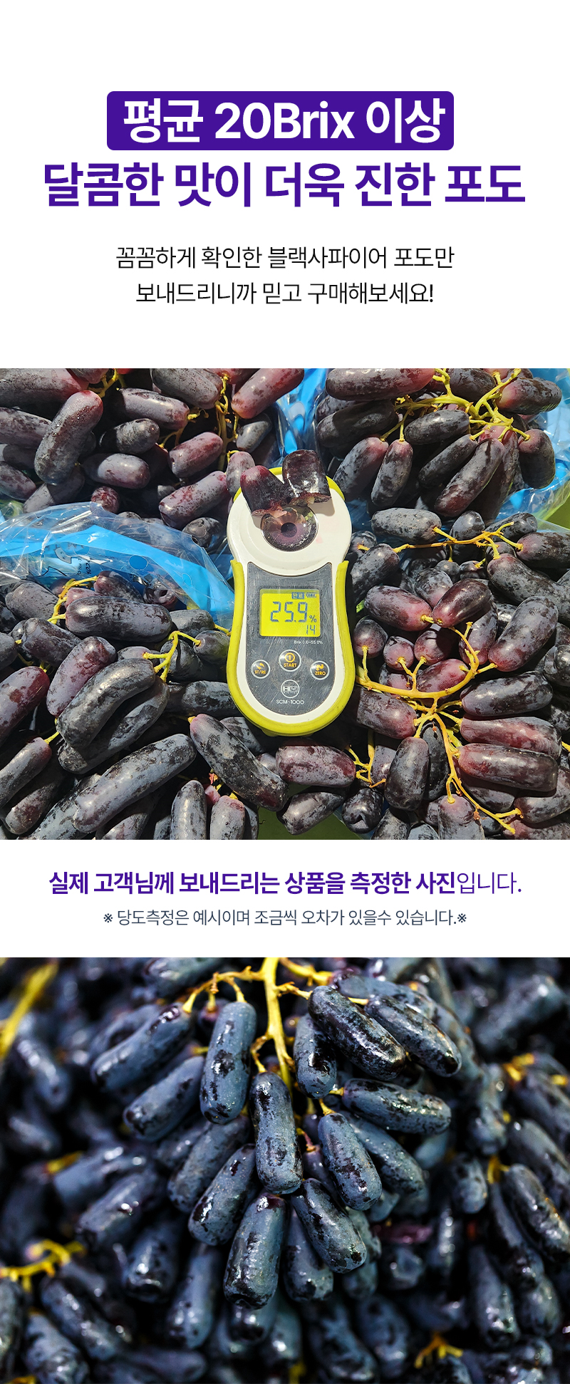 평균 20Brix 이상으로 달콤한 맛이 더욱 진한 포도!