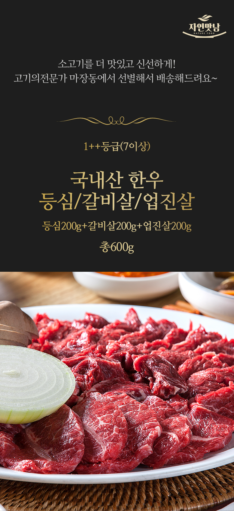 마장동한우 1++등급(7이상) 등심200g+갈비살200g+업진살200g 총600g